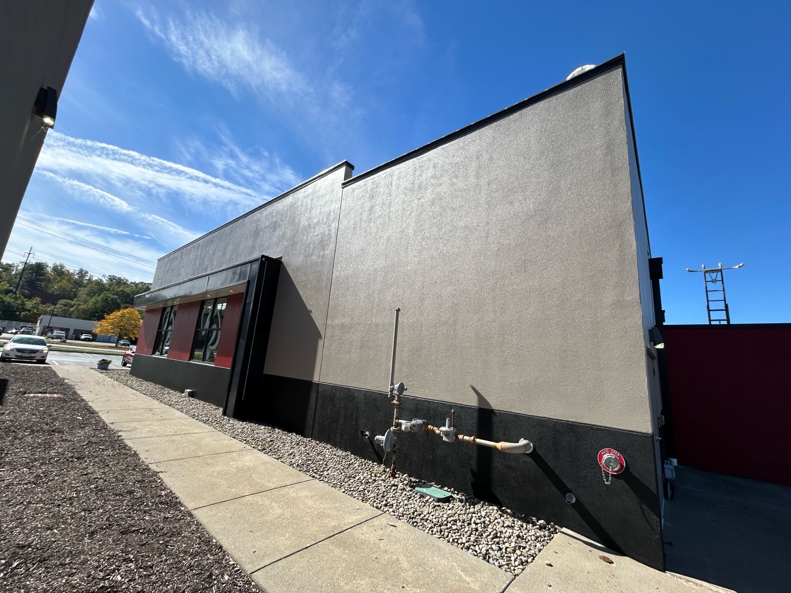 Tinted precisely to Red Robin’s national colors, Loxon XP delivered a finish that combined long-term durability with strong visual impact. The coating settled into the stucco surface with a soft, even sheen that elevated the entire exterior presence.