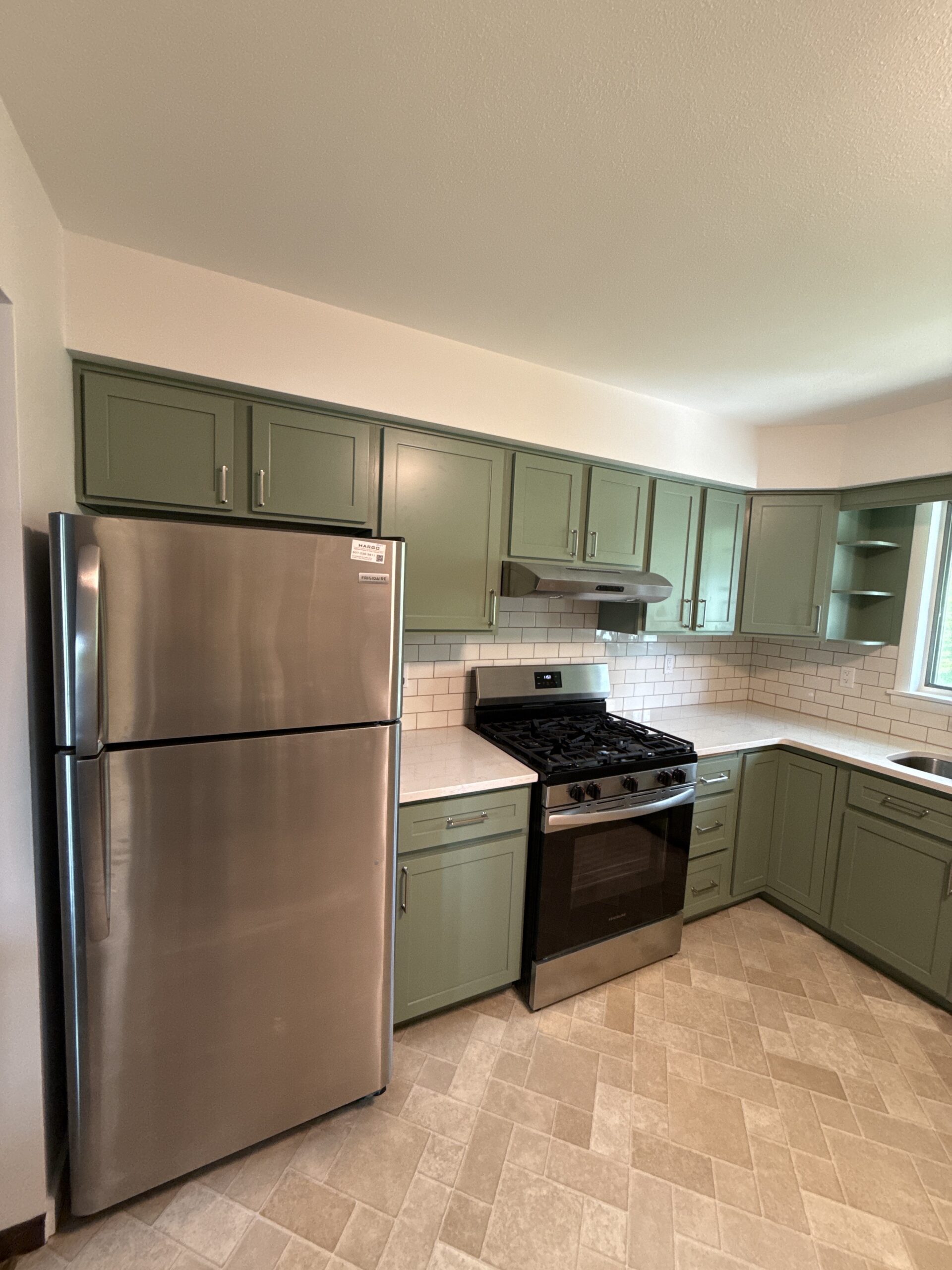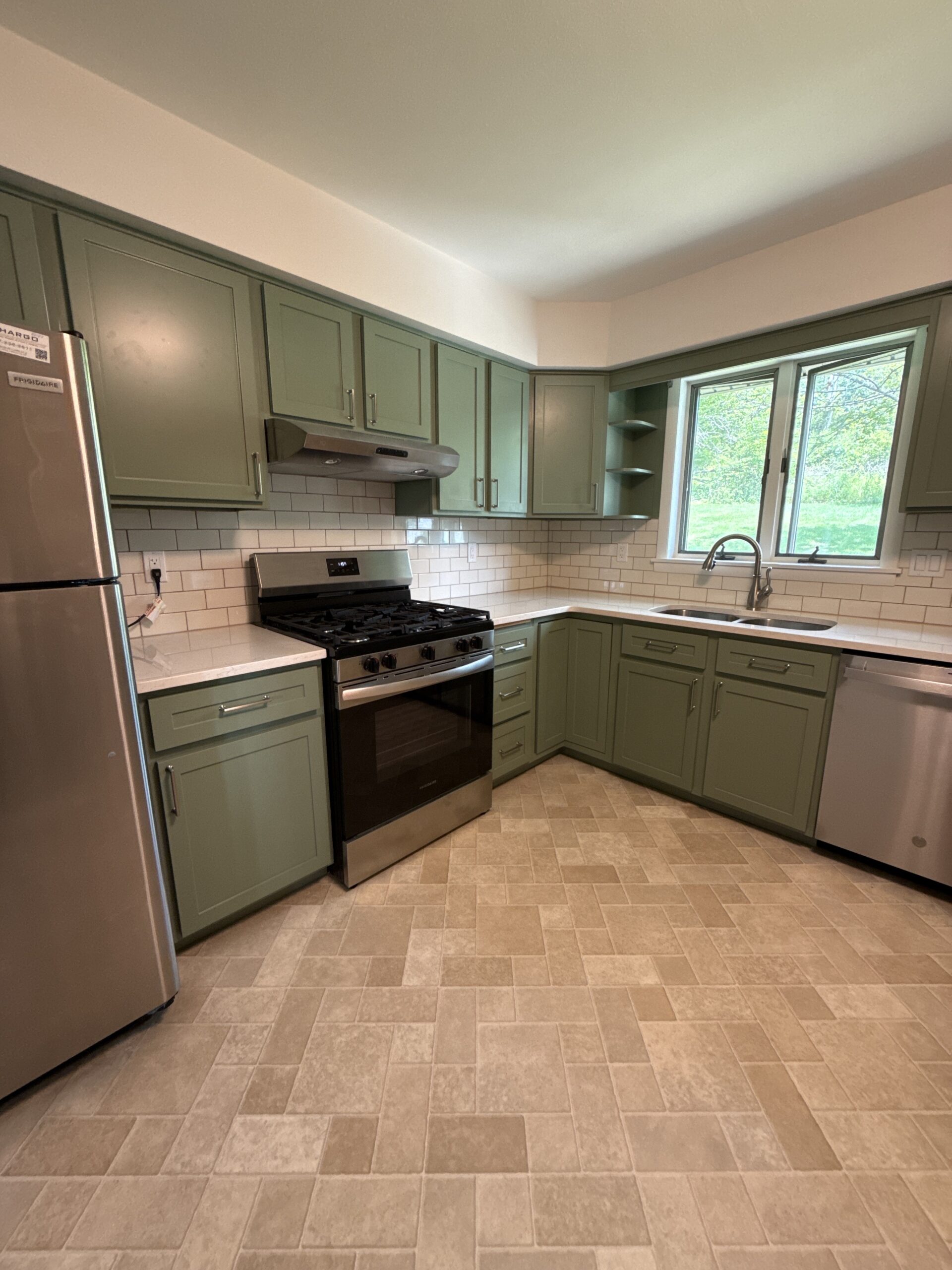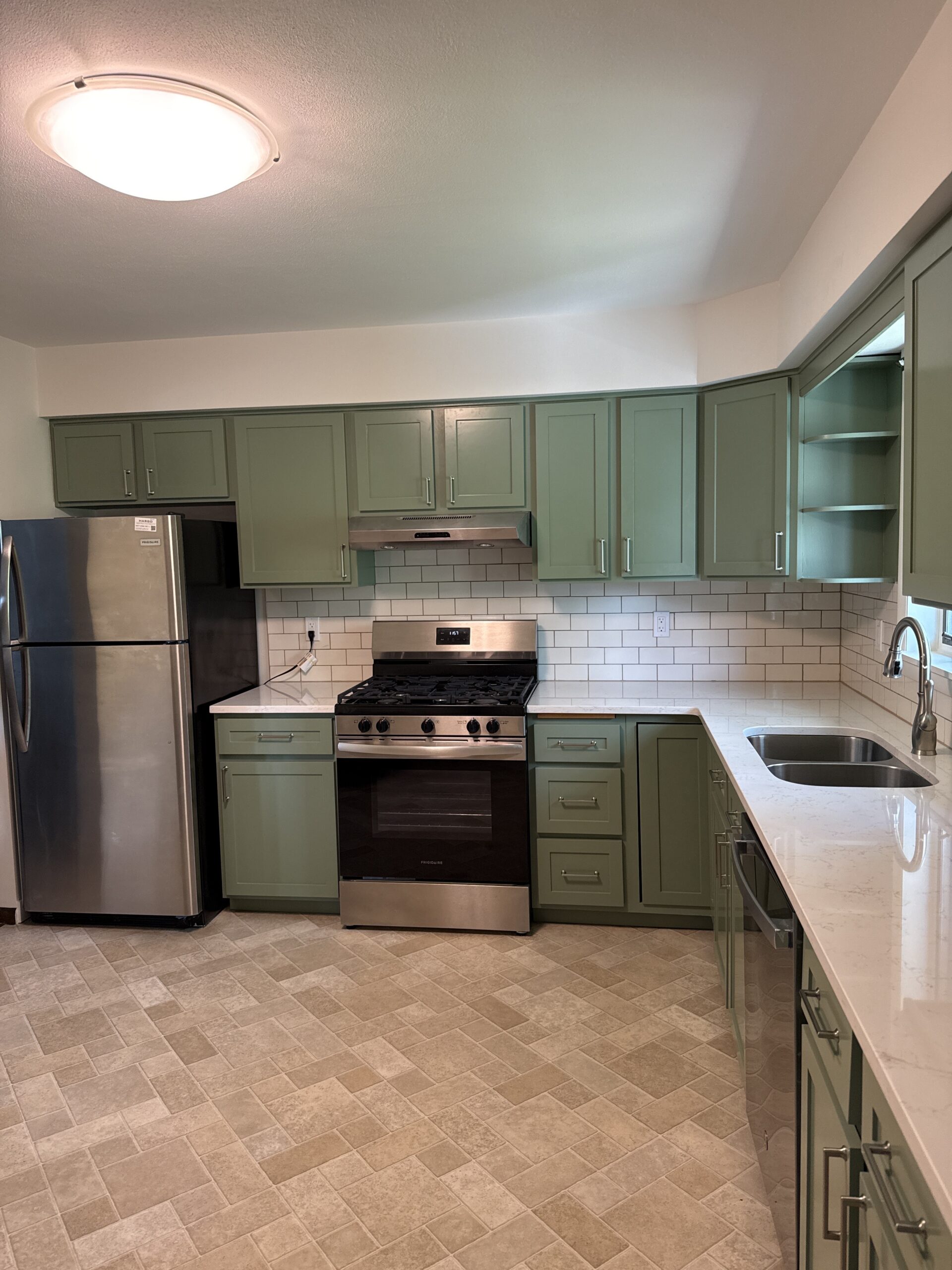 The finished cabinets became the centerpiece of the kitchen. The Adirondack Green finish provided depth, warmth, and sophistication, while the new hardware and custom-fitted drawers elevated functionality. What was once an ordinary kitchen now feels modern, cohesive, and designed with intention. Our work demonstrates why clients trust us—results that are as durable as they are beautiful.